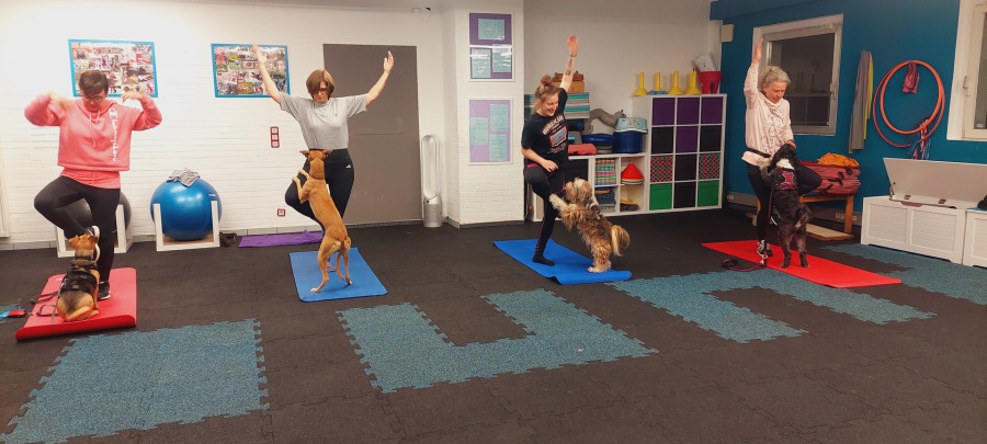 In diesem einzigartigen Kurs erleben Mensch und Hund ein ganzheitliches Bewegungs- und Entspannungsprogramm. Wir kombinieren sanftes Streching, Mobilitätsübungen und Yogaelemente, die sowohl dir als auch deinem Vierbeiner guttun.
